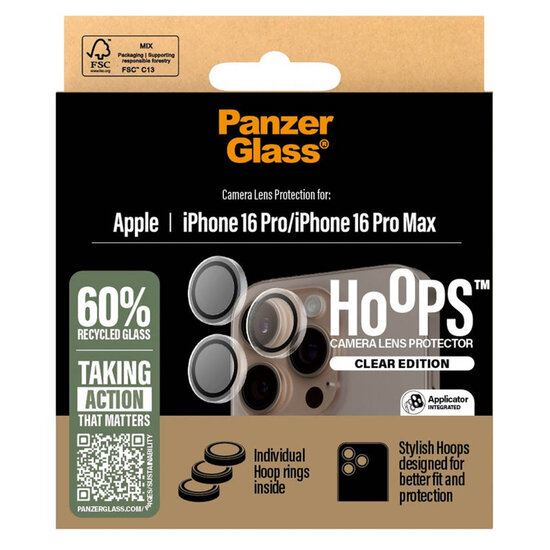 PanzerGlass - Camera Protector Hoops Optic Rings for Apple iPhone 16 Pro / 16 Pro Max - Transparent