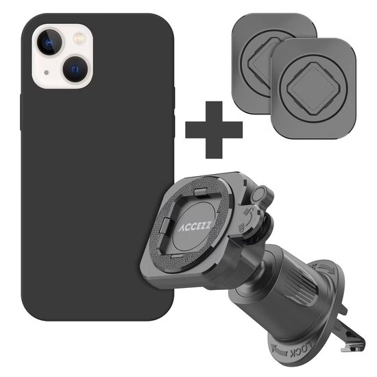 Accezz - EasyLock telefoonhouder auto - inclusief hoesje voor Apple iPhone 14 - Ventilatierooster - 360 graden draaibaar - Black