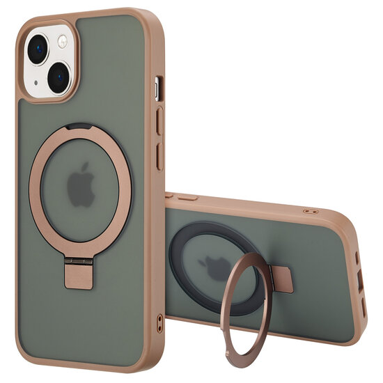 Kleur: Accezz - Ring Stand Backcover met MagSafe voor Apple iPhone 14 - Brown