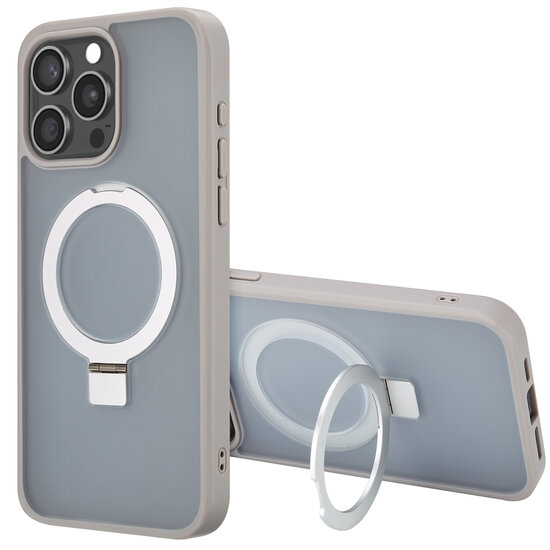 Kleur: Accezz - Ring Stand Backcover met MagSafe voor Apple iPhone 15 Pro Max - Grey
