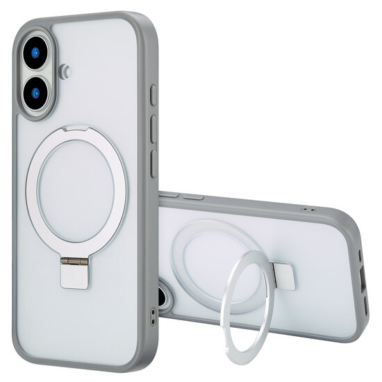 Accezz - Ring Stand Backcover met MagSafe voor Apple iPhone 16 - Grey