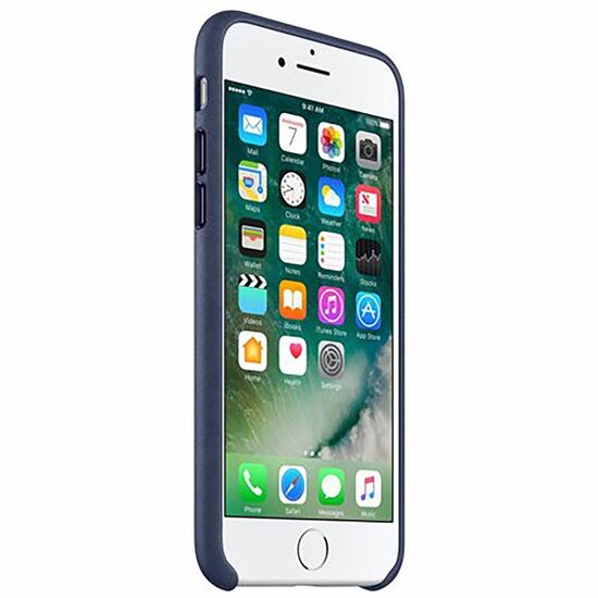 Kleur: Apple - Leather Backcover voor Apple iPhone SE (2022 / 2020) / 8 / 7 - Midnight Blue