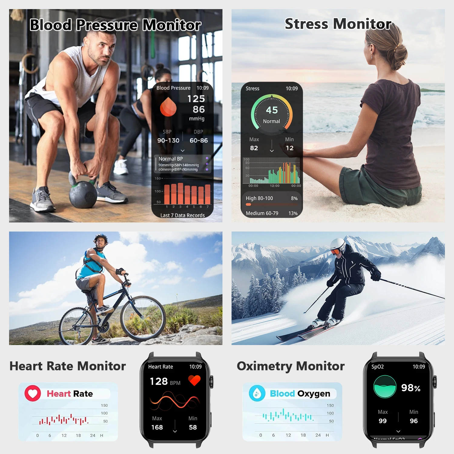 1,91" HD-scherm | Bluetooth-bellen | LED-zaklamp | Meer dan 100 sportmodi | 450 mAh-batterij | AI-spraakassistent | Gezondheidsbeheer