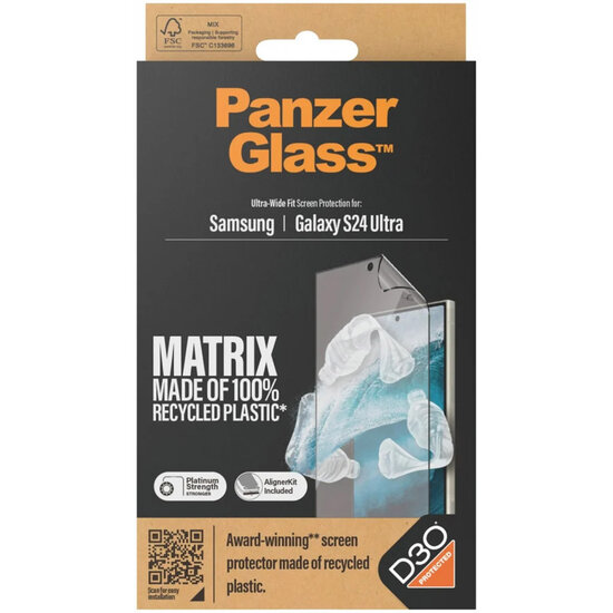 PanzerGlass - Matrix Recycled Ultra-Wide Fit Anti-Bacterial Screenprotector incl. applicator voor Samsung Galaxy S24 Ultra - Transparent