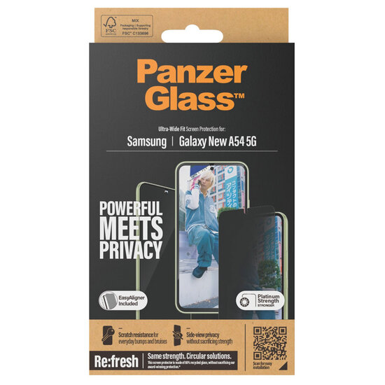 PanzerGlass - Privacy Ultra-Wide Fit Anti-Bacterial Screenprotector incl. applicator voor Samsung Galaxy A55 - Transparent