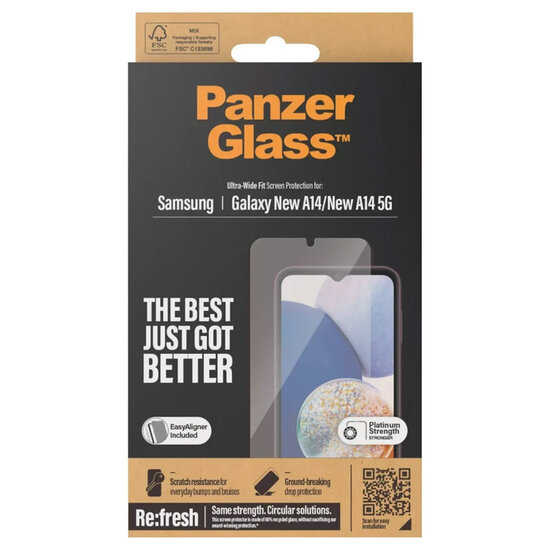 PanzerGlass - Refresh Ultra-Wide Fit Anti-Bacterial Screenprotector incl. applicator voor Samsung Galaxy A15 (5G) - Transparent