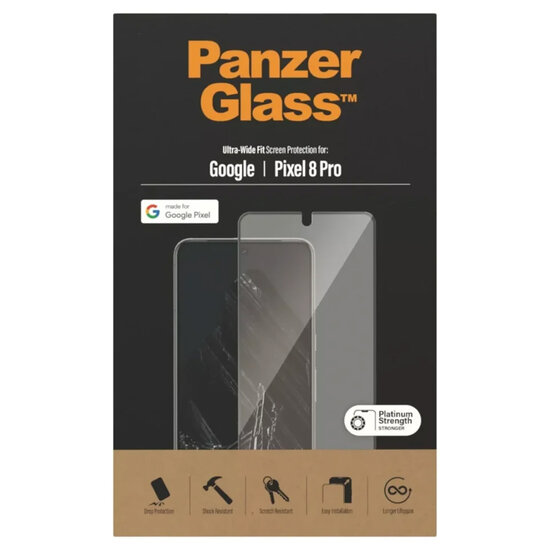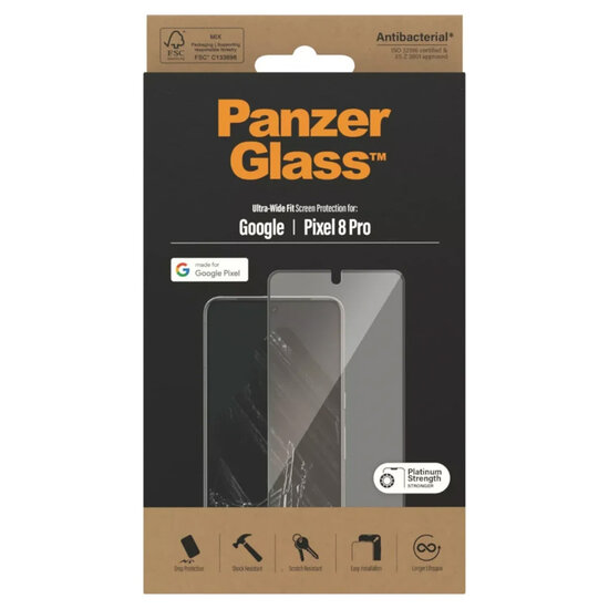 PanzerGlass - Ultra-Wide Fit Anti-Bacterial Screenprotector voor Google Pixel 8 Pro - Transparent