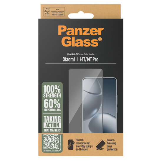 PanzerGlass - Ultra-Wide Fit Anti-Bacterial Screenprotector voor Xiaomi 14T Pro - Transparent