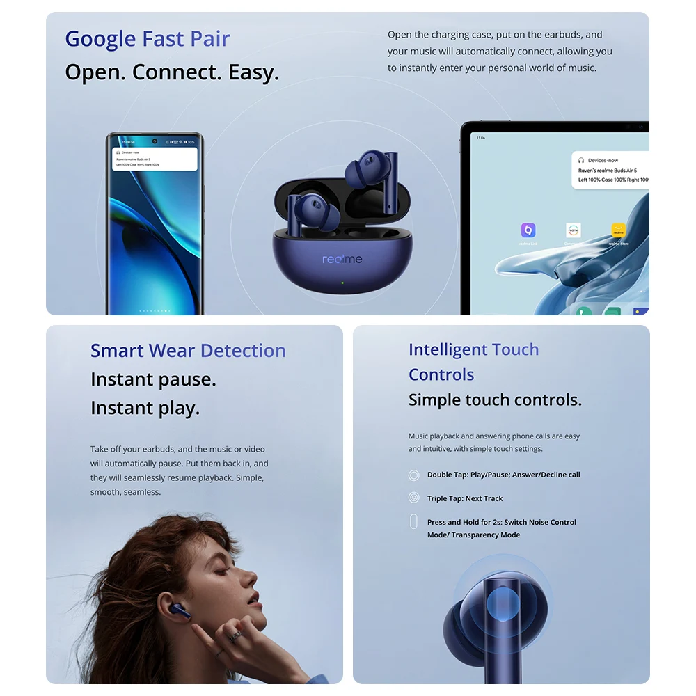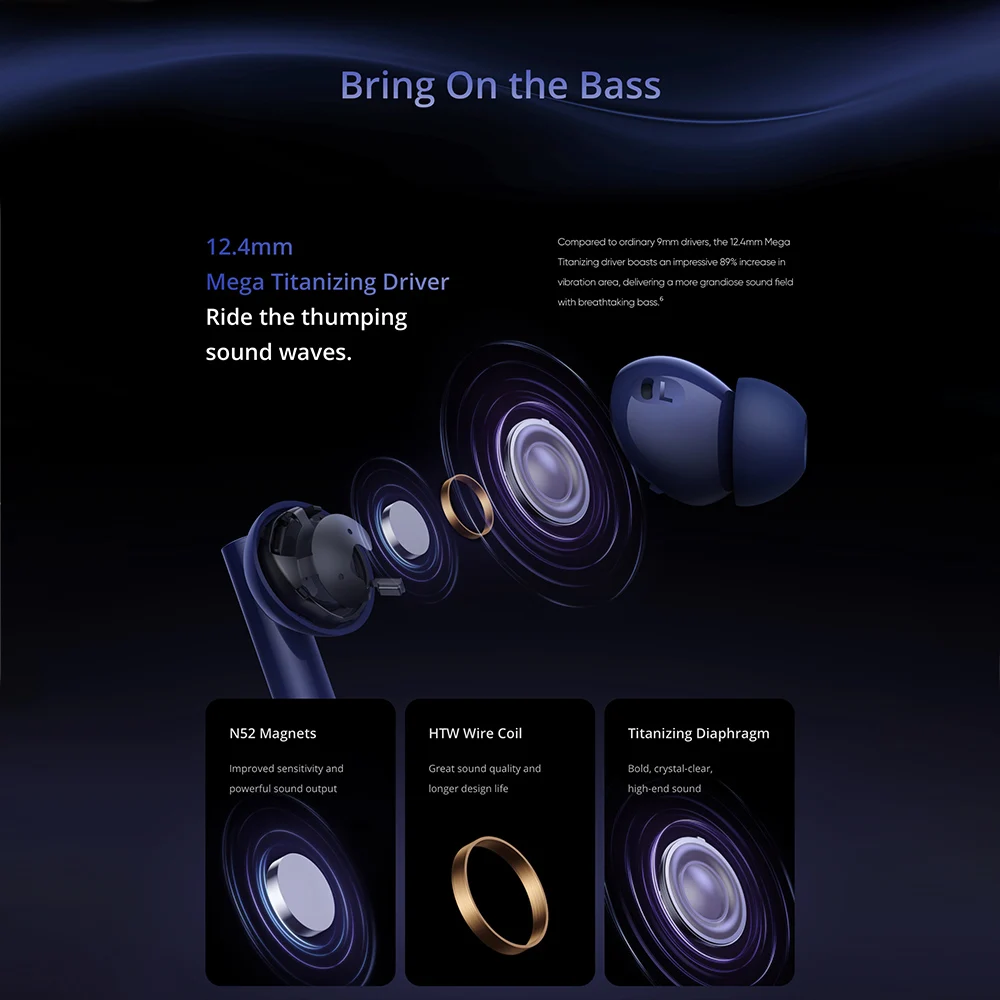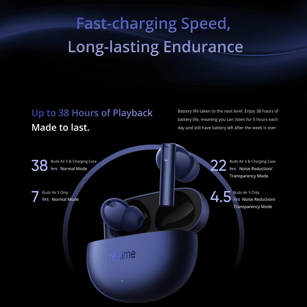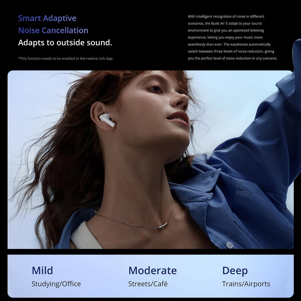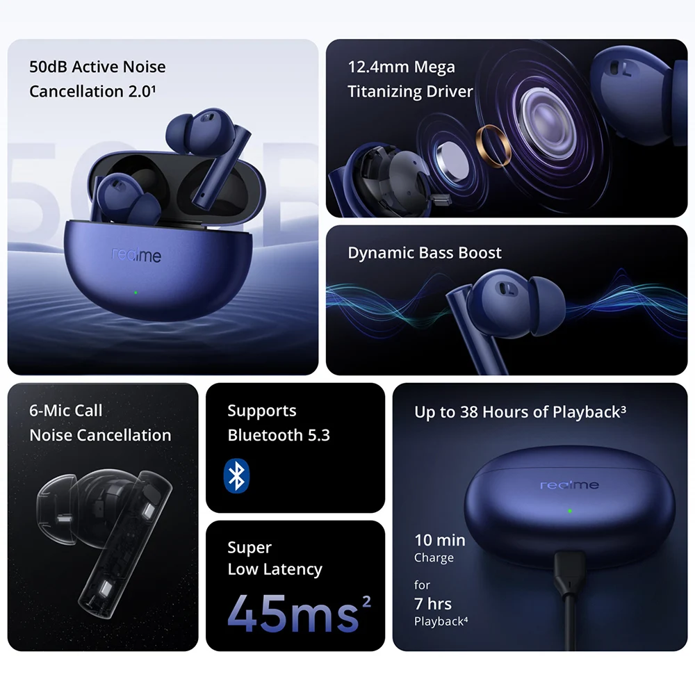 Dynamische basversterking | 50dB actieve ruisonderdrukking | Tot 38 uur afspeeltijd | Bluetooth 5.3