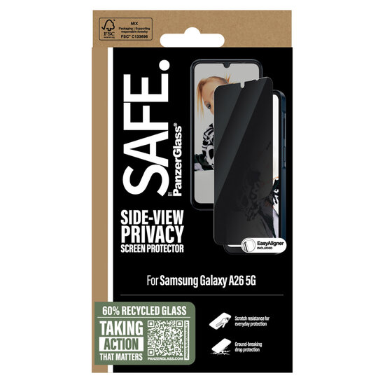 SAFE by PanzerGlass - Privacy Screenprotector Ultra Wide Fit met applicator voor Samsung Galaxy A26 - Transparent