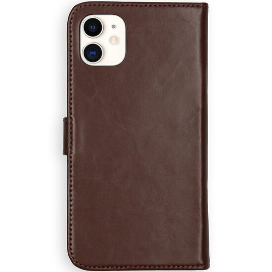 Kleur: Selencia - Genuine Leather Bookcase voor Apple iPhone 11 - Brown