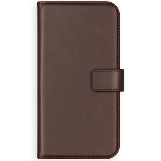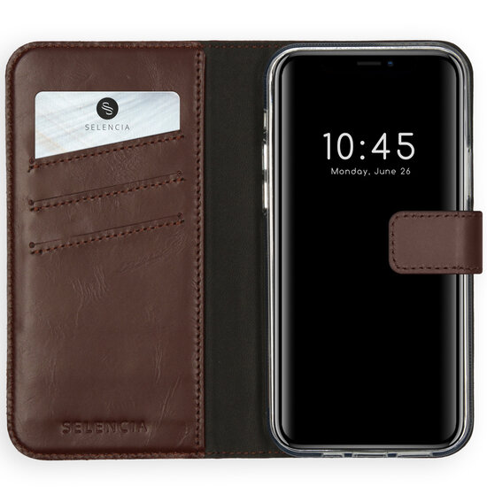 Kleur: Selencia - Genuine Leather Bookcase voor Apple iPhone 12 (Pro) - Brown