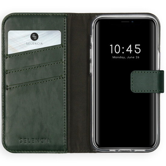 Kleur: Selencia - Genuine Leather Bookcase voor Apple iPhone 12 Mini - Green