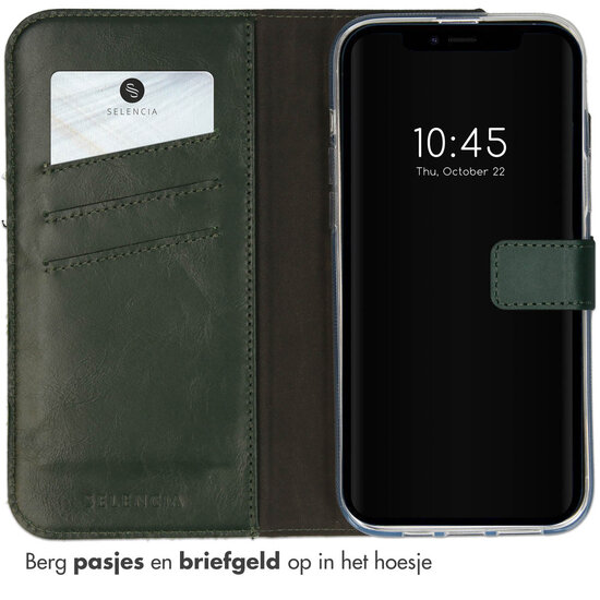 Selencia - Genuine Leather Bookcase voor Apple iPhone 14 - Green