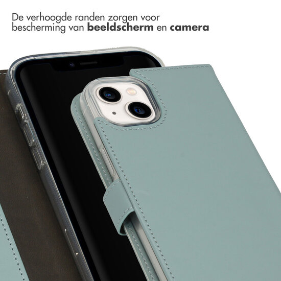 Kleur: Selencia - Genuine Leather Bookcase voor Apple iPhone 14 Plus - Air Blue