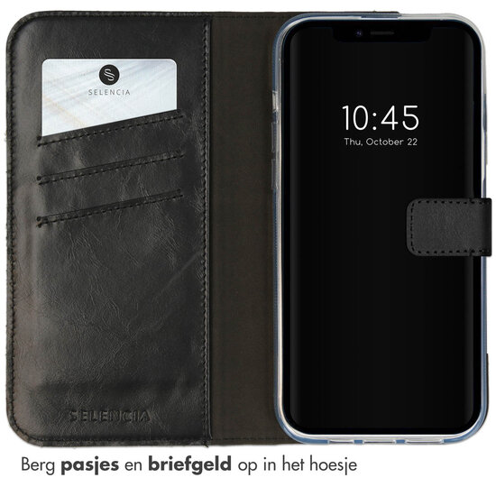 Kleur: Selencia - Genuine Leather Bookcase voor Apple iPhone 14 Plus - Black