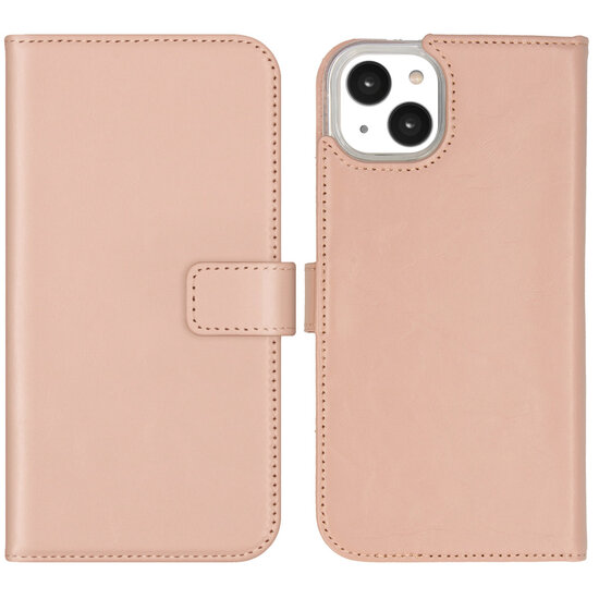 Kleur: Selencia - Genuine Leather Bookcase voor Apple iPhone 14 Plus - Dusty Pink