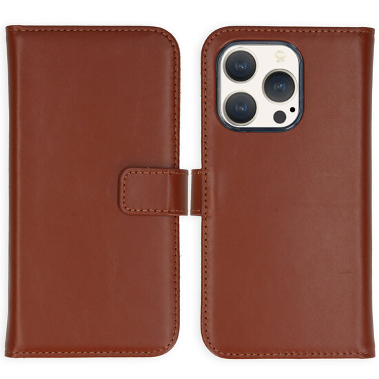 Kleur: Selencia - Genuine Leather Bookcase voor Apple iPhone 15 Pro - Light Brown