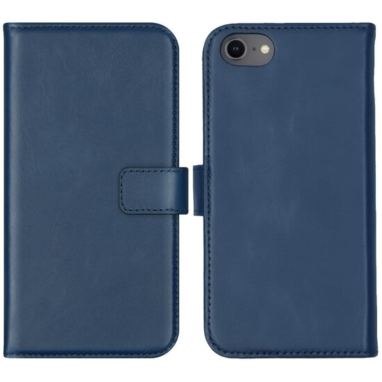 Selencia - Genuine Leather Bookcase voor Apple iPhone SE (2022 / 2020) / 8 / 7 / 6(s) - Blue