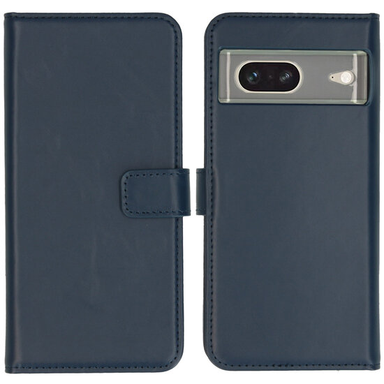 Kleur: Selencia - Genuine Leather Bookcase voor Google Pixel 7 - Blue
