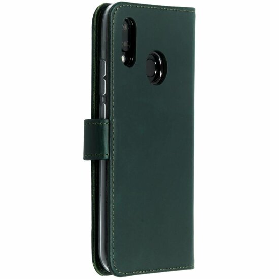 Kleur: Selencia - Genuine Leather Bookcase voor Huawei P20 Lite - Green