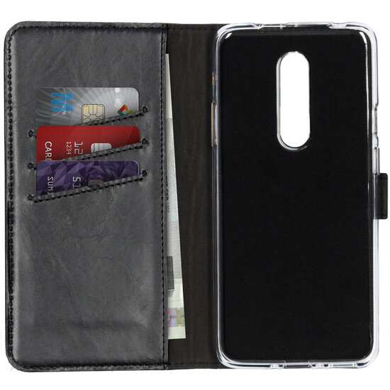 Selencia - Genuine Leather Bookcase voor OnePlus 7 Pro - Black