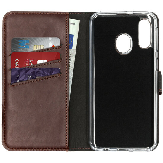 Kleur: Selencia - Genuine Leather Bookcase voor Samsung Galaxy A40 - Brown
