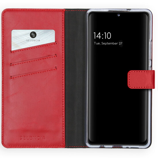 Kleur: Selencia - Genuine Leather Bookcase voor Samsung Galaxy A42 - Red