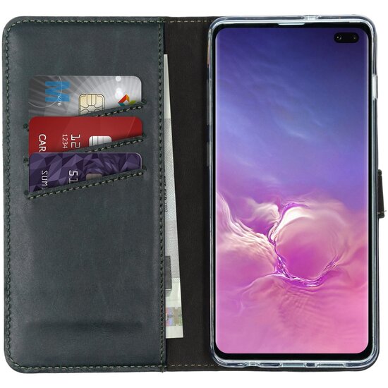 Kleur: Selencia - Genuine Leather Bookcase voor Samsung Galaxy S10 Plus - Green