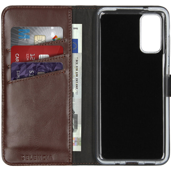 Kleur: Selencia - Genuine Leather Bookcase voor Samsung Galaxy S20 - Brown
