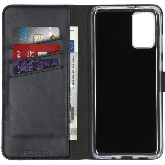 Selencia - Genuine Leather Bookcase voor Samsung Galaxy S20 Plus - Black