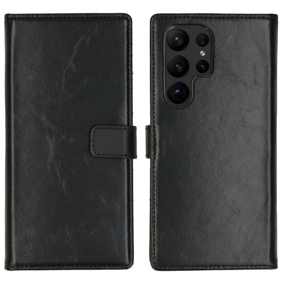 Kleur: Selencia - Genuine Leather Bookcase voor Samsung Galaxy S23 Ultra - Black