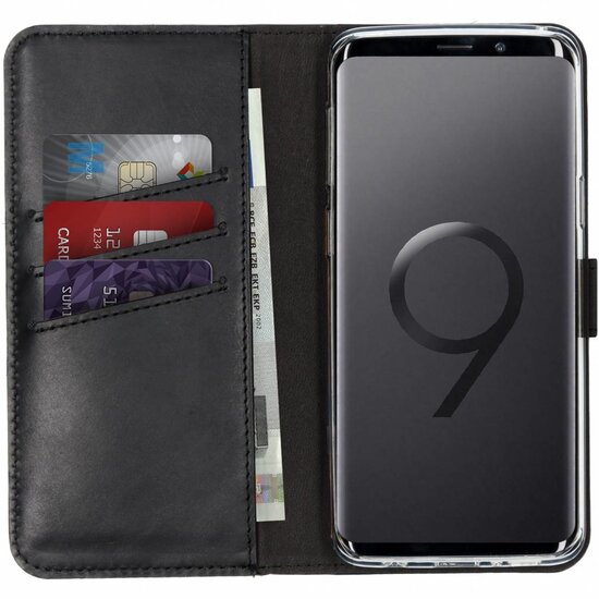 Kleur: Selencia - Genuine Leather Bookcase voor Samsung Galaxy S9 - Black