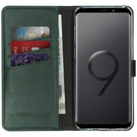 Selencia - Genuine Leather Bookcase voor Samsung Galaxy S9 Plus - Green